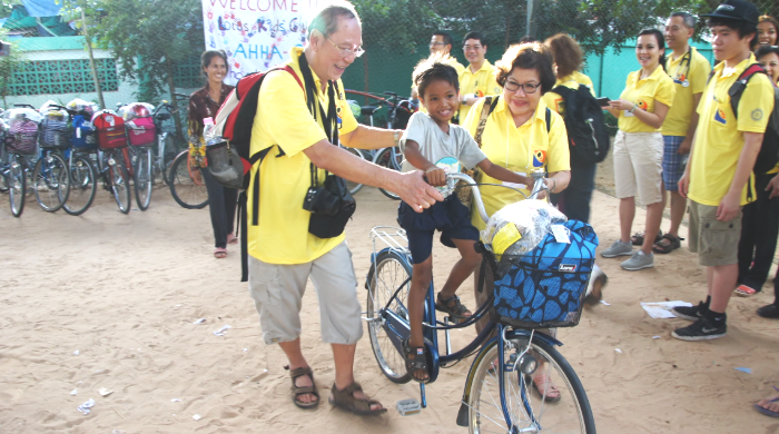 On the last day at Siem Reap, a graduation ceremony took place and each graduate was presented with a bicycle, helmet, and a school pack consisting of a back pack, books and a new school uniform.