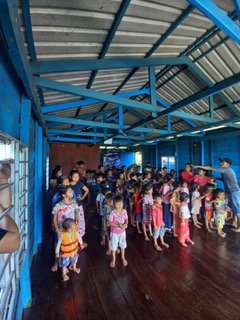 After visiting the floating village on our August 2025 mission, we witnessed the harsh conditions in which the children had to traverse to attend “school” at the back of an old mechanic garage amongst the smell and noise. Children were packed into a cramped space with no windows and no light.